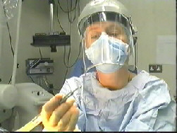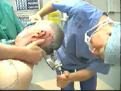 Fitting a Mayfield clamp which holds the head steady
